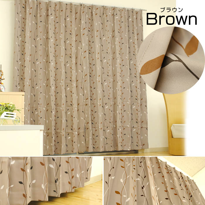 :: 商品説明 :: 1級遮光の機能付きで、インテリア性も重要!ナチュラル系かつ落ち着いた暗めカラーのカーテンをお求めの方に! ・落ち着いた色合いのナチュラルなリーフ柄 ・1級遮光で昼間もお部屋の中を暗く! ・形状記憶でいつまでも美しいドレープ ・汚れても安心!洗濯機で丸洗いOK :: 商品詳細 :: ■サイズ ・幅: 150cm 1枚入り ・丈: 135cm、 150cm、 170cm、 178cm 183cm、 188cm、 195cm、 200cm 205cm、 210cm、 215cm、 220cm 225cm、 230cm、 235cm、 240cm 245cm、 250cm から選べます (!)カーテンの採寸方法 ■1枚単品 ■組 成 ポリエステル100% ■フック材質 ポリプロピレン ■寸法変化率 タテ-1% ヨコ-1% 水洗い(L-1096D法)、ドライクリーニング ■1級遮光 (ブラウンが特に遮光性が高いです) ■アジャスターフック ※Aフック(天井付け・レールが見える)の状態 ■形状記憶 ■共布のタッセル 1枚付き ■ウォッシャブル ・フックを取りはずして、お洗いください。